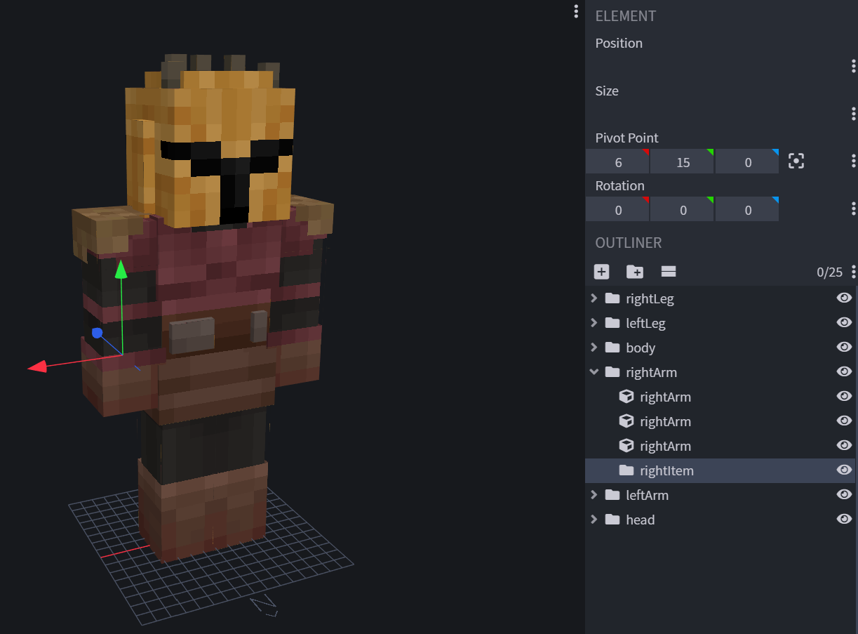 First of all, you'll need to have a model in Blockbench that has a bone called rightItem. Now set the position of the pivot point of this bone, so it sits in the place you want the entity to hold the item at.