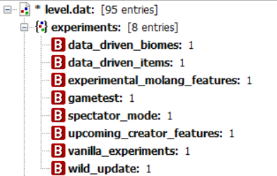 Enabling Experiments by Editing NBT